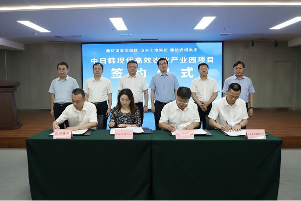 8月24日下午,中日韓現(xiàn)代高效農(nóng)業(yè)產(chǎn)業(yè)園國際高端果蔬種植基地項(xiàng)目簽約儀式在濰坊國家農(nóng)綜區(qū)總部基地舉行。濰坊國家農(nóng)綜區(qū)推進(jìn)辦常務(wù)副主任,濰坊經(jīng)濟(jì)開發(fā)區(qū)(農(nóng)綜區(qū)核心區(qū))黨工委副書記、管委會主任喬日升;山東省土地發(fā)展集團(tuán)威海有限公司董事長、總經(jīng)理李強(qiáng)...